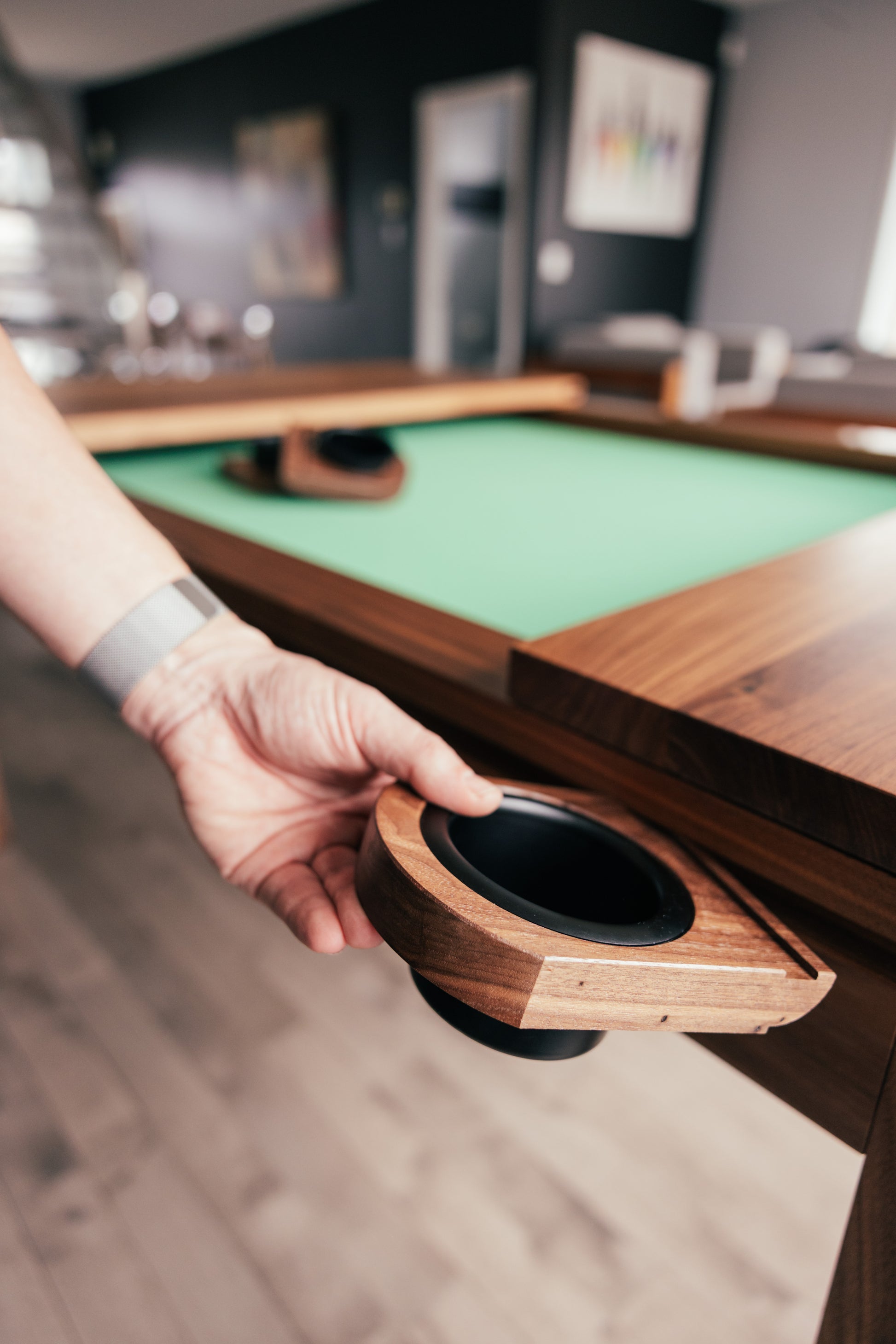 Fabriqué en bois massif, ce porte-gobelet s’ancre solidement sur le pourtour de votre table ALEA pour garder votre boisson à portée de main, sans empiéter sur l’aire de jeu. Sa forme circulaire accueille la majorité des verres et canettes. La partie centrale, en aluminium peint, ajoute à la fois robustesse et élégance — et peut être retirée facilement pour un nettoyage simple et rapide.