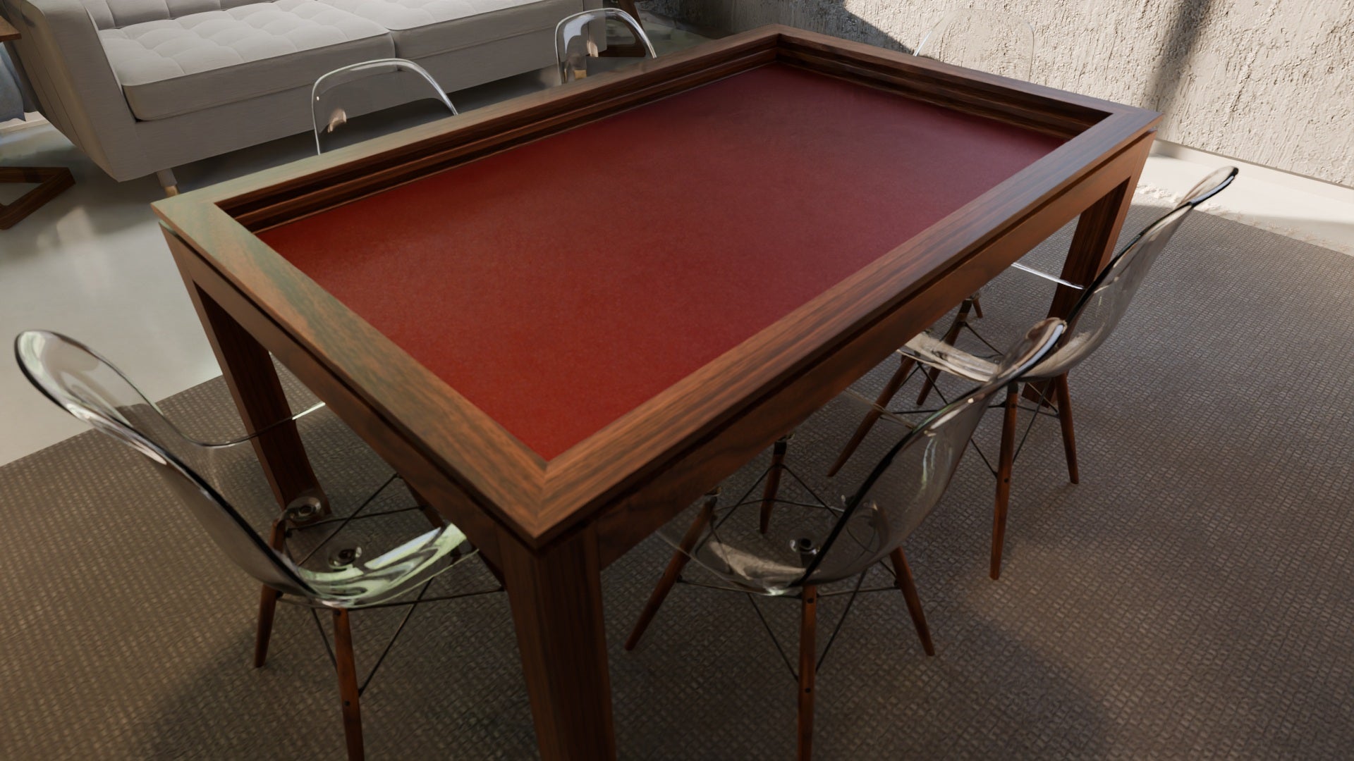 Le plateau est recouvert d’une feutrine douce et résistante (plusieurs couleurs offertes), et les panneaux de recouvrement permettent de transformer la table de jeu en table à manger ou de travail en quelques gestes. Une pièce qui s’intègre autant dans un salon que dans une salle dédiée.
